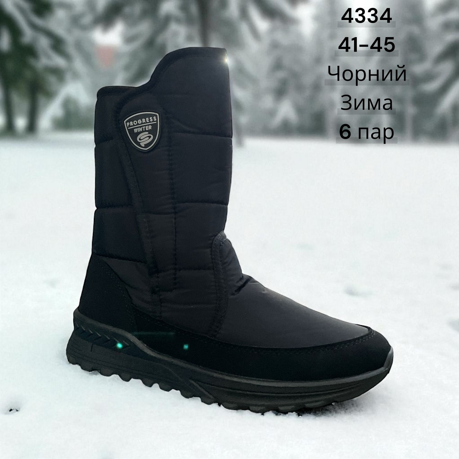 Дутики чолвічі зимові- ПРОГРЕС 4334 Чорні.Розміри-41-45.Ростовка 6 пар. В закладки